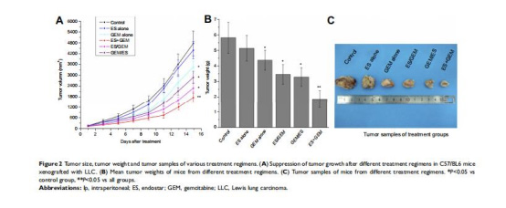 最佳給藥方案:Endostar與吉西他濱同步給藥(ES+GEM)抑瘤效果最強,機制包括: