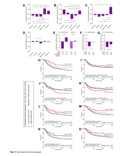 闡明CAs(特別是胞外異構體)在乳腺癌亞型中的表達模式及預后意義。