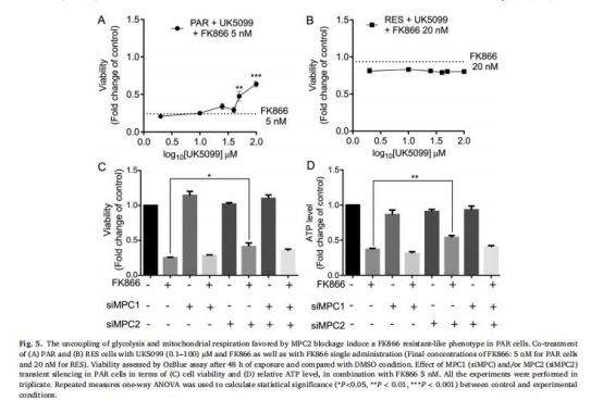 MPC2沉默(非MPC1)部分挽救FK866導(dǎo)致的細(xì)胞死亡和ATP耗竭。