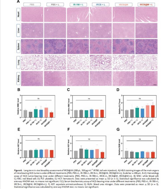 血液生化及器官病理顯示無(wú)顯著毒性(圖6),具備良好生物安全性。