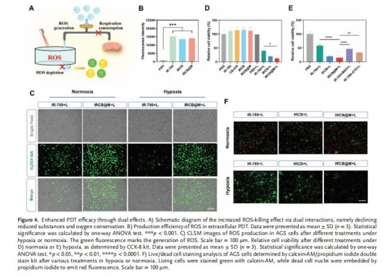協(xié)同增效PDT:光敏劑IR-780在富氧環(huán)境下產(chǎn)生更多活性氧(ROS),同時(shí)還原性物質(zhì)的減少使ROS更有效殺傷腫瘤細(xì)胞。