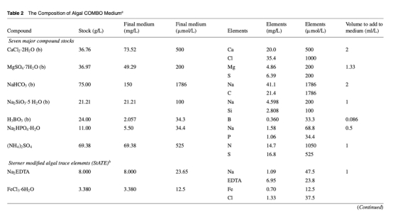 營養(yǎng)基礎(chǔ)構(gòu)建:通過培養(yǎng)高營養(yǎng)藻類(如Tetradesmus)作為食物源,優(yōu)化COMBO培養(yǎng)基配方(表2)。