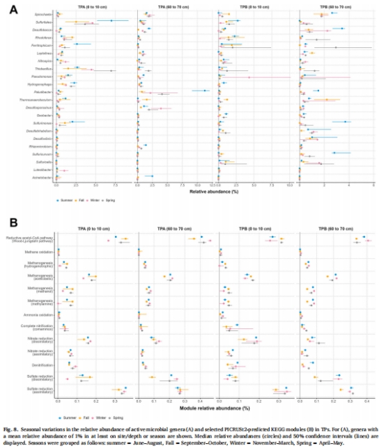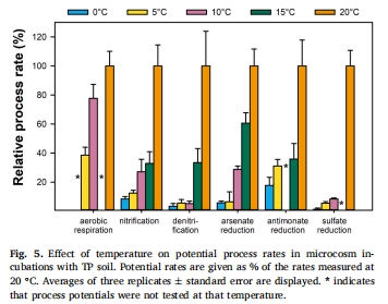 微生物活性:實驗室培養顯示微生物過程(硝化、反硝化、硫酸鹽還原等)在0°C仍持續發生,但速率隨溫度降低而下降(圖5)。