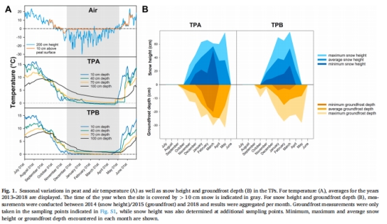 數據:氣溫(-30°C至24°C)、泥炭溫度(-1°C至16°C)、積雪厚度(>10cm持續6個月)、凍土深度(TPA達25cm)。