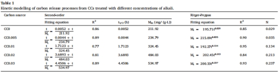 碳釋放性能:0.03 mol/L NaOH處理的玉米芯(CC0.03)化學需氧量(COD)釋放量最高(2397.94 mg/L),符合Ritger-Peppas擴散動力學模型(表1)。