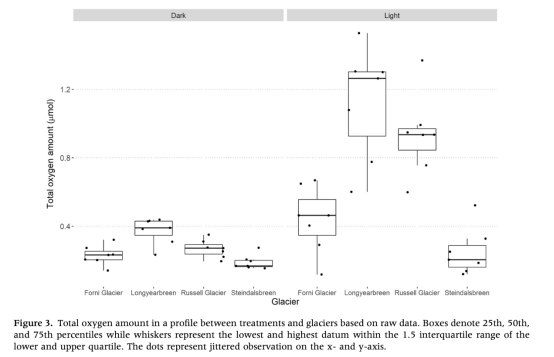 摘要探討了冰川表面沉積物(cryoconite)中氧合作用對有機質(zhì)分解的影響。通過采集北極和歐洲大陸五個冰川的樣品,實驗?zāi)M了靜置(stagnant)和機械混合(mechanically mixed)條件(模仿融水攪動),測量了氧垂直分布和有機質(zhì)含量變化。結(jié)果發(fā)現(xiàn):