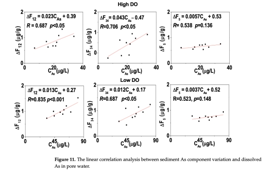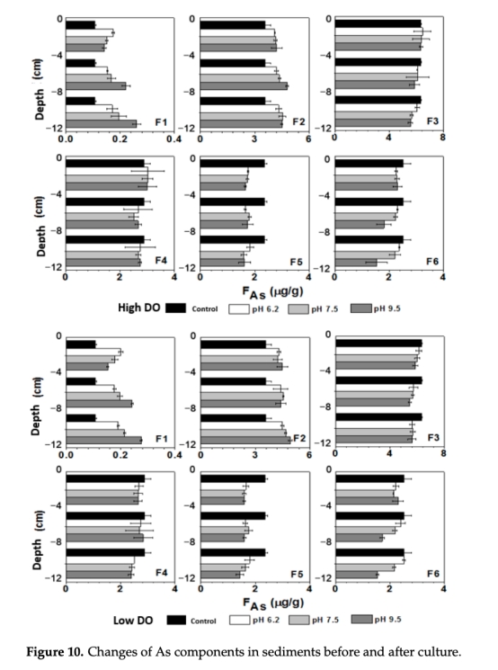 意義:低DO下可交換態砷(F1+F2)占比升至26.7%,鐵錳氧化物結合態砷(F3+F4)減少9.2%,明確釋放源為鐵錳氧化物還原溶解(圖11)。