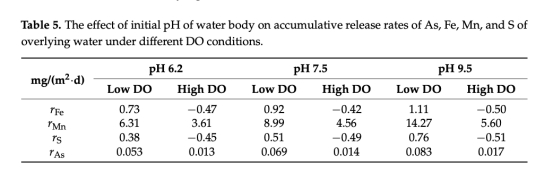 意義:低DO+pH 9.5組砷釋放速率最高(0.083 mg/(m2·d)),量化多因子協同效應。
