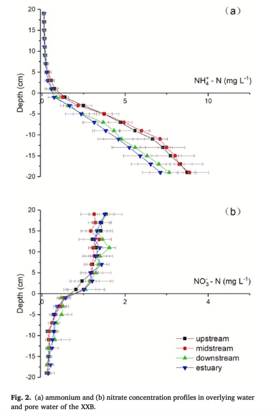 研究意義:揭示沉積物有機氮礦化釋放NH??、NO??在沉積界面耗竭的規(guī)律,證實下游湍流增強促進氮礦化和釋放,為內源污染機制提供證據(jù)。