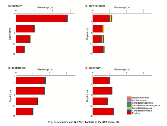 微生物群落解析:通過16S rRNA高通量測序,鑒定硝化菌、反硝化菌、厭氧氨氧化菌(anammox)和硝酸鹽/亞硝酸鹽依賴型厭氧甲烷氧化菌(N-DAMO)等功能微生物(圖4、圖5、圖6)。