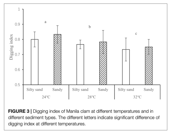 菲律賓蛤仔的挖掘指數:表示蛤仔的埋藏深度變化,數據來自圖3(Figure 3)。