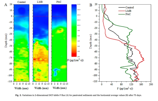 實(shí)驗(yàn)設(shè)計(jì):采集巢湖河口完整沉積物柱樣,分為對照組、LMB處理組(0.79 g/cm2)、PAC處理組(0.16 g/cm2),模擬75天原位鈍化。