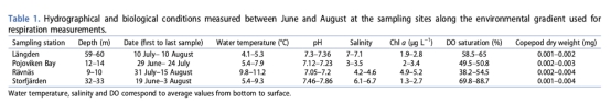 在芬蘭灣西部選取4個鹽度梯度站點(Pojoviken Bay鹽度3-3.5,Ravnas鹽度4.2-4.6,Storfjarden鹽度6.1-6.7,Langden鹽度7-7.1)。