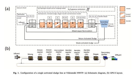 模型構(gòu)建:基于GPS-X平臺(tái)建立水力、生物動(dòng)力學(xué)及N?O排放子模型,包括: