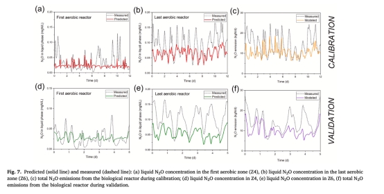 排放模型優(yōu)化:溶解N?O濃度是氣體排放預(yù)測(cè)的直接輸入,電極數(shù)據(jù)驗(yàn)證了基于OTR的KLa計(jì)算方法比傳統(tǒng)經(jīng)驗(yàn)公式更準(zhǔn)確(圖8e vs 圖8f),提升排放因子可靠性。