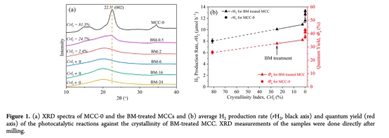 開發高效預處理策略提升纖維素光催化重整制氫效率,闡明球磨誘導的纖維素結構變化(如無定形化、重結晶)與制氫性能的構效關系。