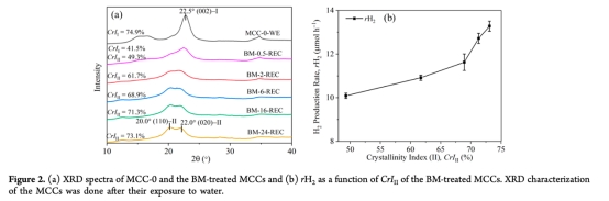 2. 纖維素II型比例(CrIII)與H?產率(rH?)正相關,歸因于其疏松晶格結構提升水解效率。