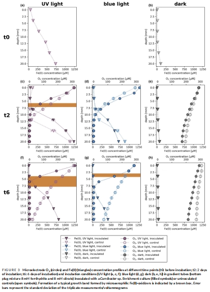 研究證實(shí)Fe(III)光還原產(chǎn)生的Fe(II)可作為微好氧鐵氧化菌的電子供體: