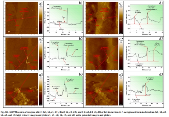 微生物行為:生物膜CLSM成像(圖3)、活菌計數(圖4)、SKPFM電位分析(圖15-19)。