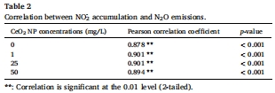CeO? NPs(≥25 mg/L)短期暴露刺激N?O排放,排放量與NO??積累呈正相關。