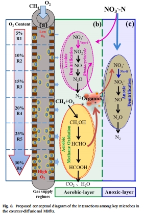 逆擴散膜生物膜生物反應器(MBfRs)中的生物膜分層 與好氧甲烷氧化耦合的好氧缺氧反硝化的影響氧氣壓力的影響