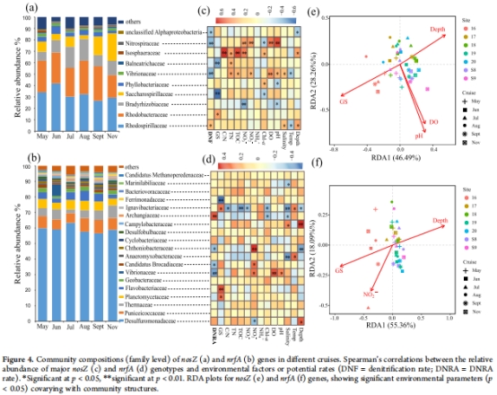 意義:首次量化養殖區脫氧事件對氮損失的增強效應(反硝化↑59.3%),證實季節性脫氧區是重要氮匯(圖3g-h)。