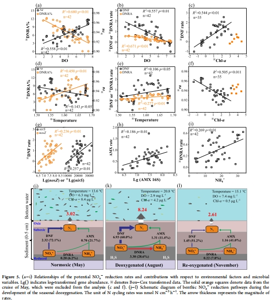 闡明脫氧對硝酸鹽還原路徑的影響:量化季節性脫氧期間反硝化、厭氧氨氧化和DNRA的參與度與動態變化。
