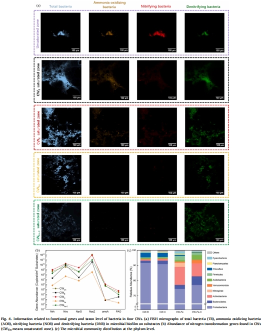 鐵氧化菌(Thiobacillus)豐度↑1.79%(CWFe-C)→促進Fe2?驅動的硝酸鹽厭氧氧化(NDFO)。