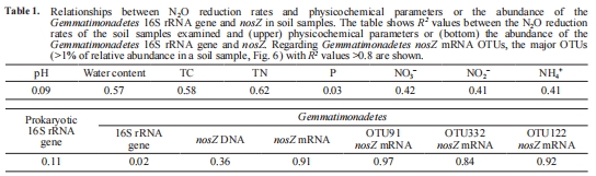 土壤證據(jù):4種農(nóng)業(yè)土壤中Gemmatimonadetes的 nosZmRNA豐度與N?O還原速率顯著正相關(guān)(R2>0.91),特異性O(shè)TU91、OTU332和OTU122是關(guān)鍵功能菌群(表1)。