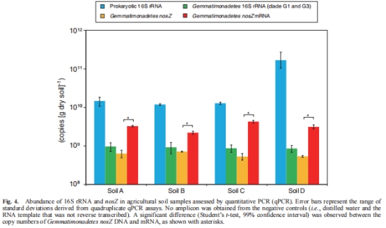 定量PCR(qPCR)檢測 nosZDNA/mRNA及16S rRNA基因豐度(圖4)。