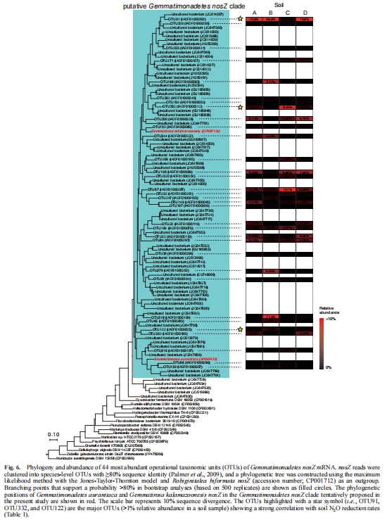 分子機(jī)制:Gemmatimonadetes細(xì)菌通過高親和力 nosZ(clade II型)基因介導(dǎo)N?O還原,其mRNA豐度是活性標(biāo)志(圖4, 6)。