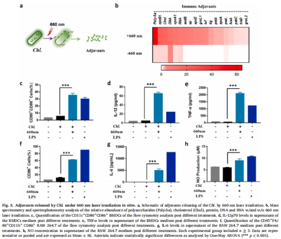 660 nm激光觸發(fā)Chl.釋放ARS-2、糖蛋白等佐劑(圖3b,圖S4);