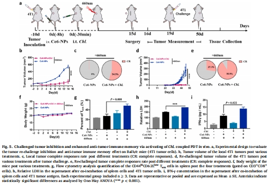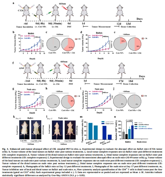 研究意義:Chl.耦合PDT誘導特異性T細胞應答,抑制非照射區(qū)腫瘤(圖4n)。