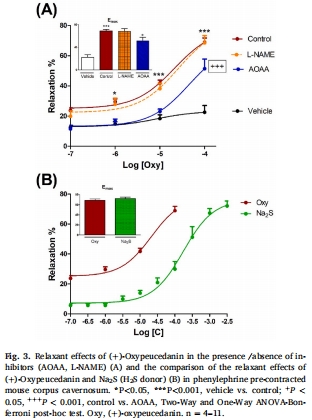 數(shù)據(jù)來(lái)源:圖2A(Pp-CE + AOAA/L-NAME)、圖3A((+)-oxypeucedanin + AOAA)。