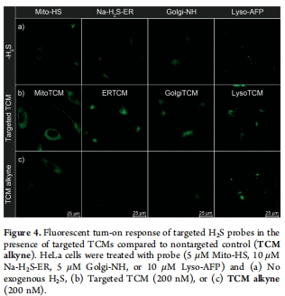 定位成像:使用細胞器特異性H?S熒光探針(如Mito-HS、Lyso-AFP)確認H?S靶向釋放(圖3)。