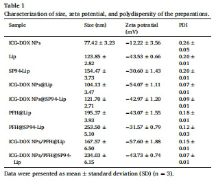 復(fù)合納米囊泡:將ICG-DOX NPs裝載至PFH@SP94-Lip中(粒徑234nm,表1)。