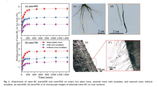 2. 附著動力學(xué):量化nano-BC在水稻根表的附著率,分析根活力與分泌物對附著的影響。