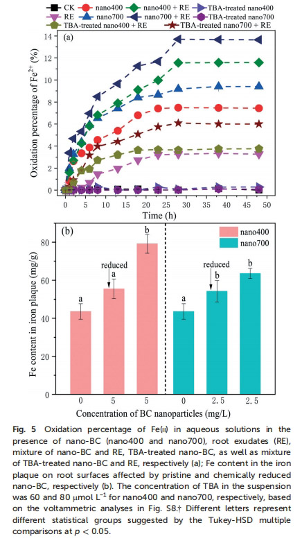 標(biāo)題:Nano-biochar modulates the formation of iron plaque through facilitating iron-involved redox reactions on aquatic plant root surfaces