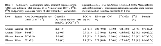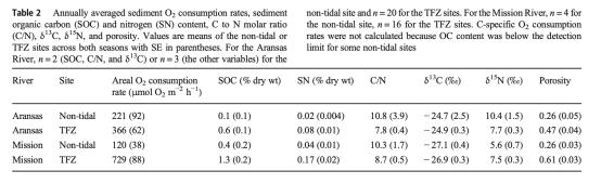 潮汐淡水區作為生物地球化學循環的熱點:德克薩斯州南部兩條河流下游的沉積物有機質分解