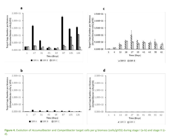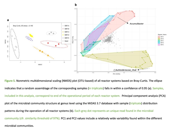 4. 微生物解析:qPCR定量Accumulibacter/Competibacter,16S rRNA測序分析群落結(jié)構(gòu)(圖4-5)。