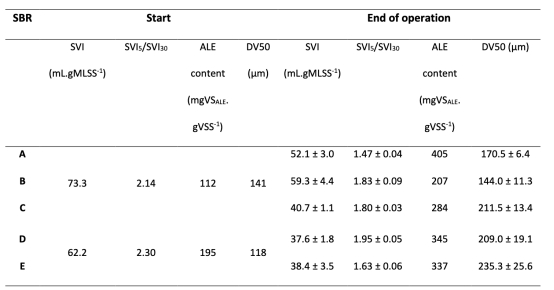 ? 所有系統(tǒng)DV50增大(141→235μm)、SVI降低(73.3→38.4 mL·gMLSS?1),證明復(fù)雜底物不影響顆粒化進(jìn)程。