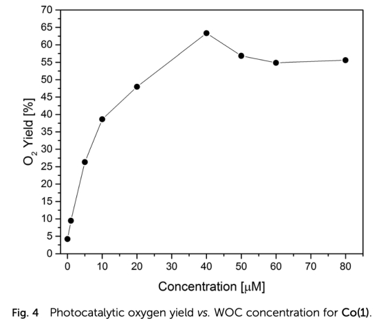 ? 數(shù)據(jù):Co(1)在40 μM濃度下O?產率達63%,TON=235(1 μM時);CoNi(2)僅26%