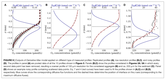 提出了一種新型計(jì)算模型("Derivative-Max"),用于通過微傳感器測(cè)量的濃度剖面自動(dòng)同步確定底物-水界面位置并精確計(jì)算溶解氣體/溶質(zhì)的擴(kuò)散通量。該模型基于質(zhì)量傳遞方程推導(dǎo)的界面判據(jù)(d2C/dz2=0),利用雙曲正切函數(shù)擬合剖面數(shù)據(jù),無(wú)需預(yù)先指定界面位置或假設(shè)底物幾何形狀,顯著降低了傳統(tǒng)方法的主觀性誤差,并在低分辨率、噪聲數(shù)據(jù)中表現(xiàn)出魯棒性。
