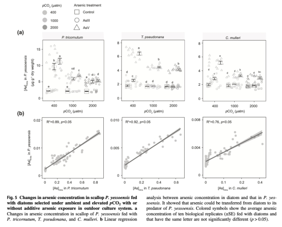 ? 來源:圖5a展示扇貝砷含量,圖5b證實硅藻與扇貝砷濃度的正相關性。