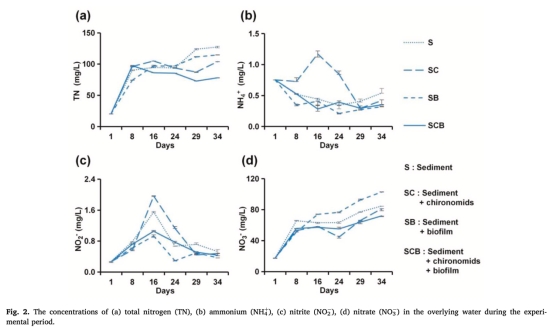 ? 意義:動態(tài)反映生物擾動對氮釋放的促進(如SC組初期TN升高)及生物膜對氮轉(zhuǎn)化的加速(如SCB組后期TN最低)。
