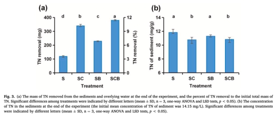 ? 意義:直接體現(xiàn)耦合技術(shù)對沉積物氮負荷的削減效果(SCB組沉積物TN顯著低于對照組)。