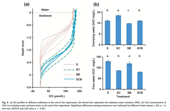 ? 意義:揭示搖蚊擾動擴大好氧-厭氧界面的機制(SC/SCB組DO滲透深度2.9 mm > SB/S組2.1 mm)。