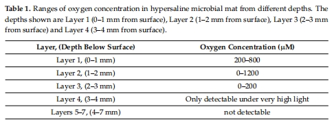 測(cè)量微生物墊0–4 mm層氧濃度,區(qū)分晝夜變化(正午 vs. 午夜)。