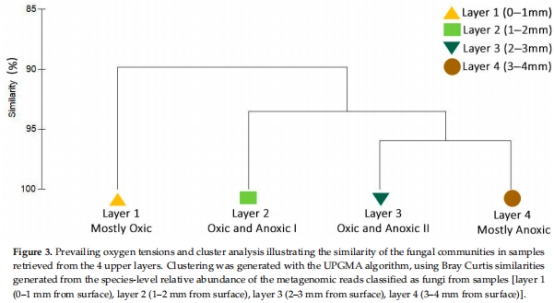 生態(tài)學(xué)意義:氧梯度驅(qū)動(dòng)微生物垂直分區(qū),真菌可能通過菌絲網(wǎng)絡(luò)跨層傳輸物質(zhì)/信號(hào)。