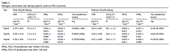 解決PN-A工藝惡化問題:針對因過度曝氣導(dǎo)致的NOB增殖和硝酸鹽積累,探索羥胺短期投加的恢復(fù)效果。